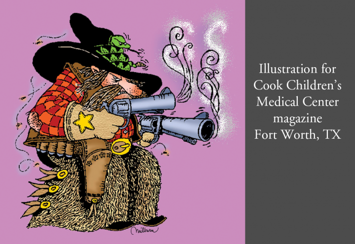 Milburn Taylor has a specialty in creating fun and effective humorous illustrations to meet client’s specific needs. His drawings are created with various tools: pencil, pencil and watercolor, marker, vector, and more.